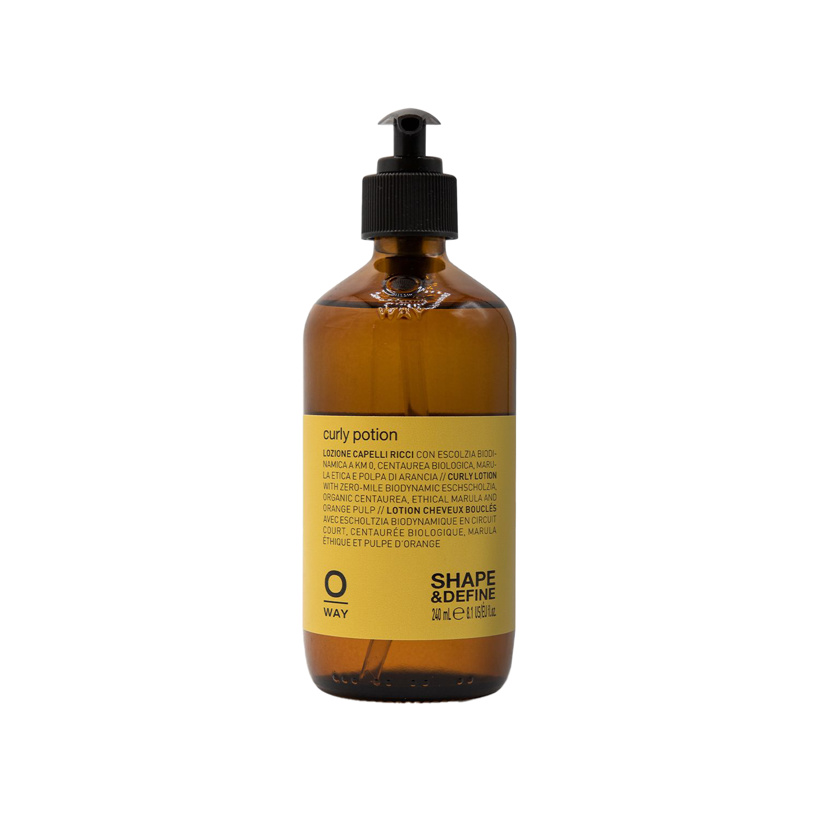 Oway's Curly Potion is ideal for forming, shaping, and hydrating your curls. Enriched with Orange-pulp Extract, up-cycled from food waste and ethically produce marula oil.