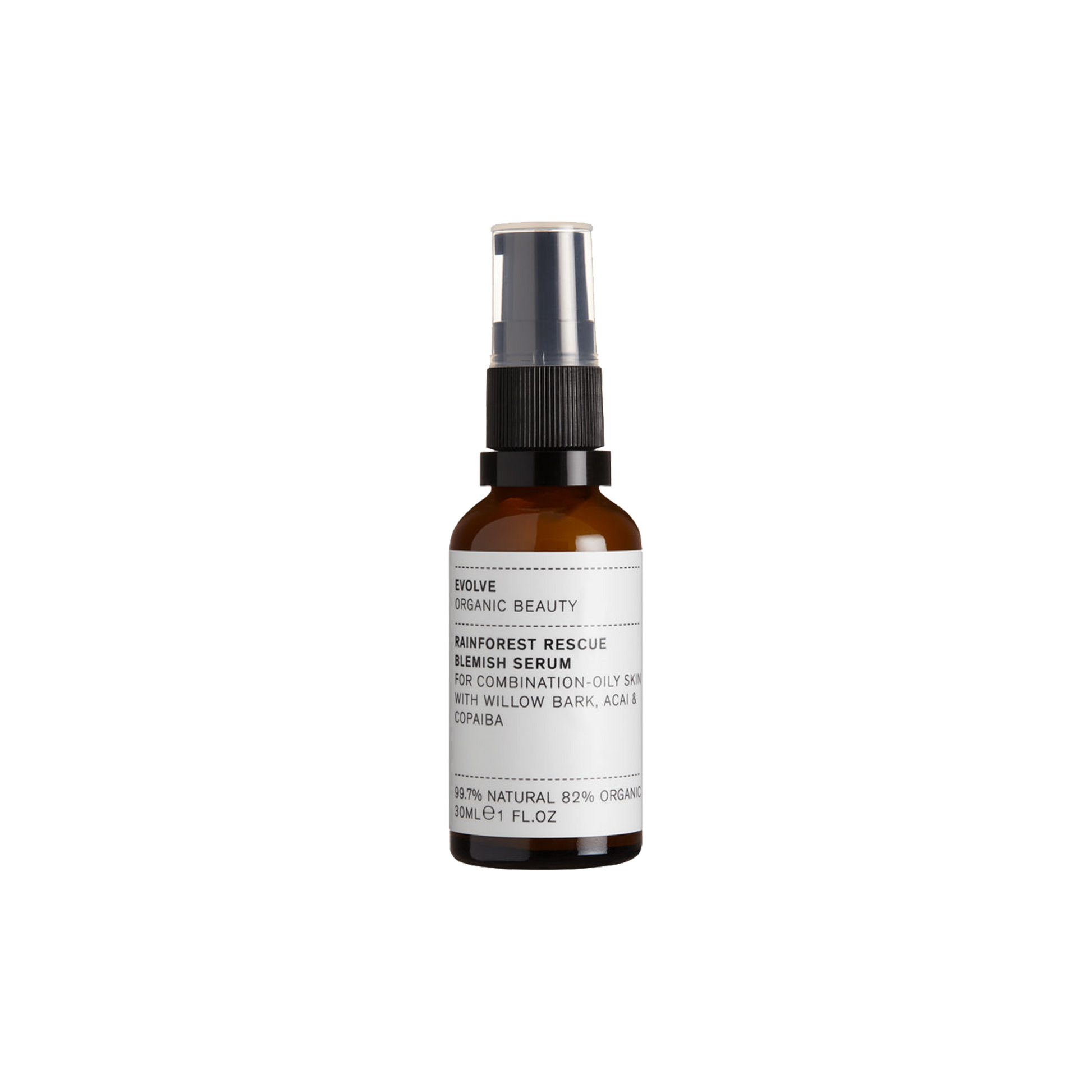 Rainforest Rescue Blemish Serum is a natural yet powerful treatment designed to target blemish prone and congested skin. This high-performing serum helps decrease sebum production and blemishes, making it ideal for oily and combination skin. Formulated with 99.7% natural and 82% organic ingredients, including willow bark which is a natural source of salicylic acid, helping to boost cell turnover and exfoliate without irritation. An Amazonian blend of Acai and Copaiba is proven to decrease sebum production and reduce the appearance of blemishes and open pores. The Rainforest Rescue Blemish Serum leaves skin clear, calm and matte and is suitable for all skin types, including sensitive skin.